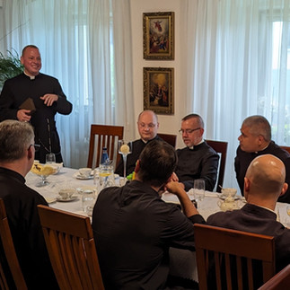The parish priests welcomed the Canons Regular to celebrate Mass and had a special dinner where the pastor of the parish, Father Zbisek Jarasz, received a special medallion of the Canon's Regular which he will place on the restored altar near the painting of St. John Cantius.